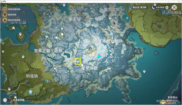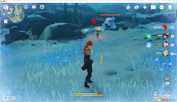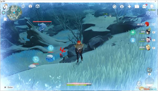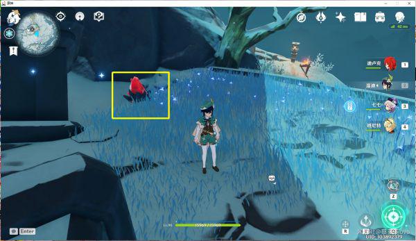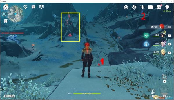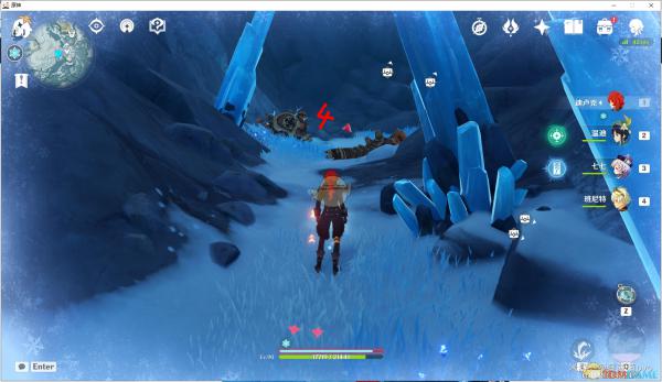 二.星荧洞窟传送点,一直往洞穴里走,最底部,也有一个冰坨坨,需要开启挑战才能解锁,同样需要四个深赤之石。