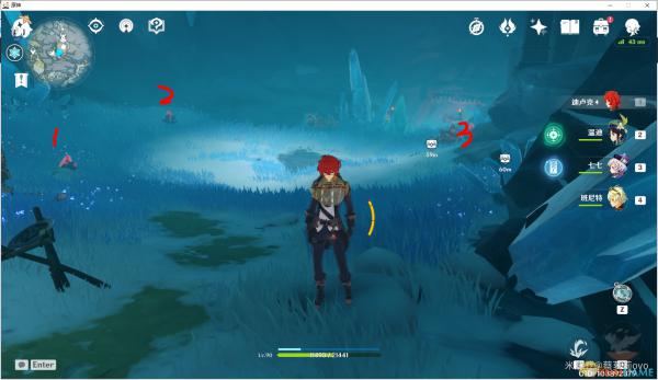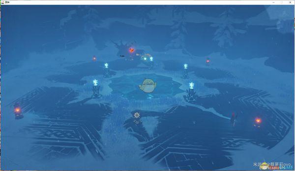 三.眠冬谷左下角传送点,需要激活精灵(ps:精灵走的顺序,就是激活冰柱子的顺序),打掉三个机器人,即可,同样需要四个深赤之石。