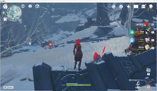 一.覆雪之路传送点,往前看,有一个冰坨坨,每捡一个深赤之石,就可以锤一下冰坨坨,需要砍四下。然后出现忍冬之树。