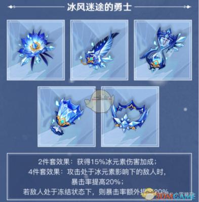 冰套圣遗物“冰风迷途的勇士”两件套效果是+15%的冰伤,四件套效果是攻击冰影响下的敌人+20%爆率,攻击被冰冻的敌人再+20爆率。和重云、凯亚这些冰系角色都是比较契合的。比较推荐的阵容是凯亚、重云、行秋和温迪。