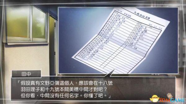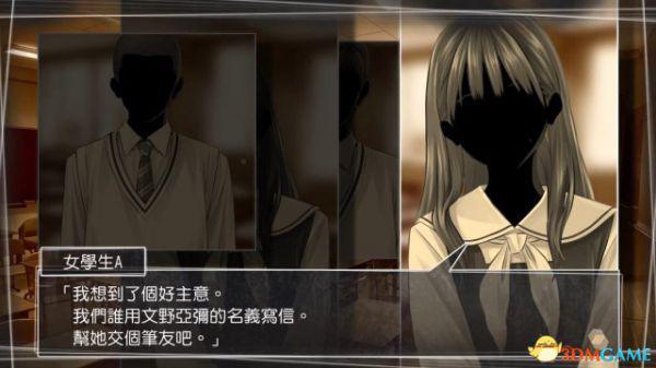 移动至松江大庭高中,这里也是亚弥就读的地方。调查正中的大门,立即有学生指向主人公这里,原来是被怀疑不轨了。经过“猩猩男”渡边将也和佐藤老师的调查后,不由分说被带进办公室,不过对方没找到任何不轨证据。