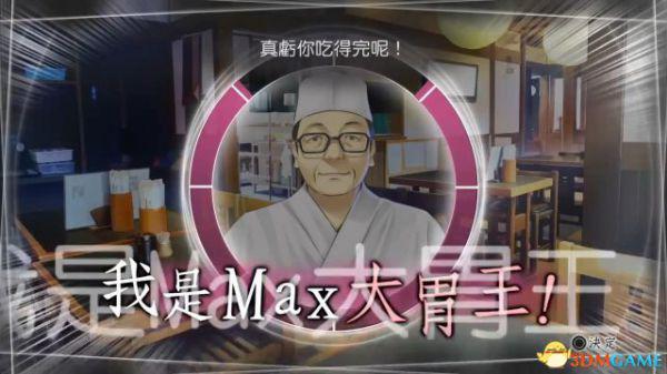 得知有客人将这份招牌面点吃完后,店老板都被惊动出来了。这时主人公要与对方进行互动,采用名为“Max模式”的交流方法。其实就是随着进度条的填充短时间内选择自己满意的对话,这里选择最羞耻的“我是Max大胃王”。