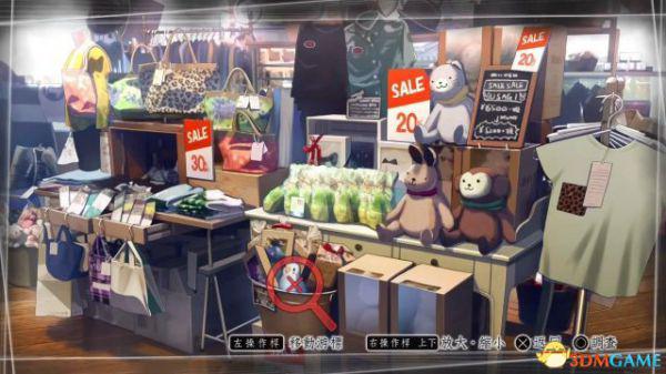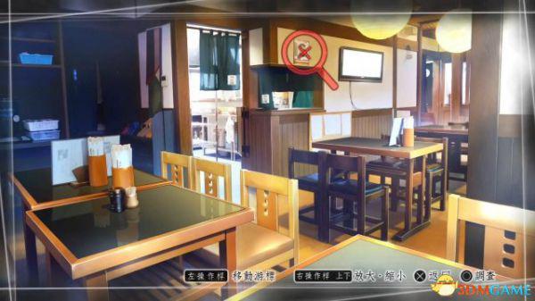 调查:画面会出现放大镜图标,推动左摇杆移动图标,到达可调查的物件上会变成红色,按下确定按钮便可进行调查。游戏过程许多关键道具的获得需要通过这种方式。