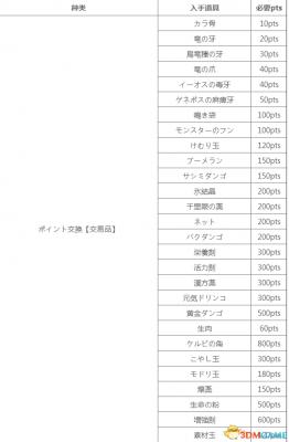 怪物猎人XX交易窗口可兑换道具列表及所需点数
