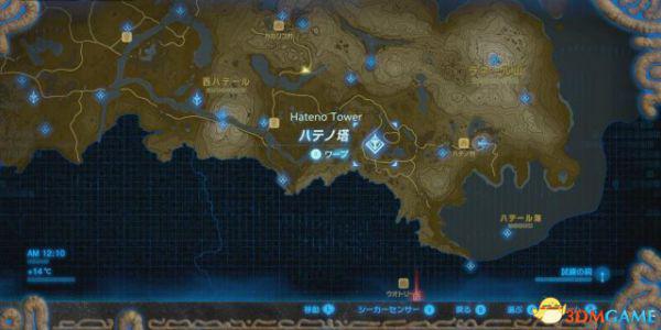 途中稍微绕一下,去 Hateno / ハテノ塔,把这片区域的地图打开。