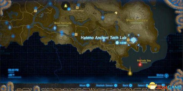 Hateno 村外,沿着东南方向的山坡一路向上,来到古代研究所(Hateno Ancient Tech Lab)。
