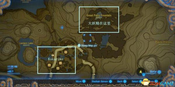 妖精之泉的位置,我们第一次来 kakariko / カカリコ村 时就找到啦。