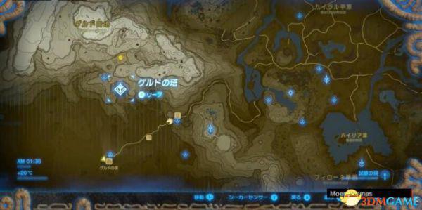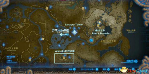 先去把这个区域的塔点亮【Lanayru Tower / ラネールの塔】,打开这个区域的地图。