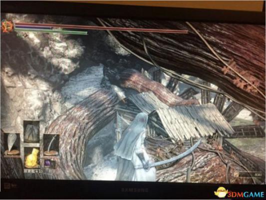 第二只:解决完第一只即可跑酷,跳下去后再跳去可发现篝火,然后旁边再下去就可以看到…世界安静了…推土塔残骸图,进入沼泽需要穿过一个屋子,屋子左边还有一个小屋,小屋左边悬崖有个树干,需要跑+跳过去,就能看到天使本体了,之后就是第3个篝火点。