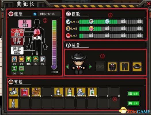 2:体力和心情,心情和体力影响监狱长工作效率,可以通过吃喝,按摩等活动增加。