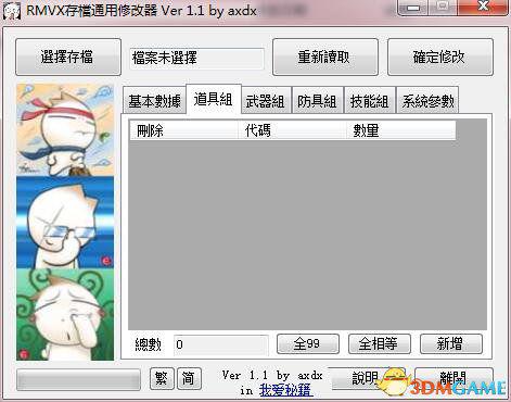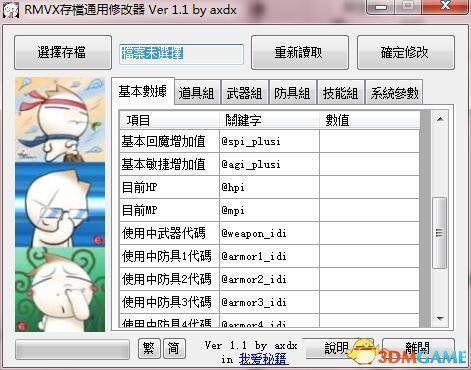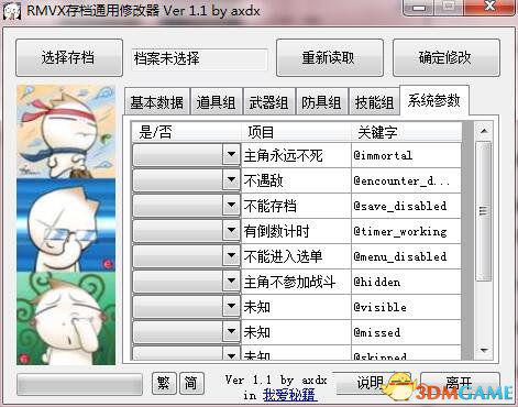 首先是RMVX修改器下载地址:RMVX存档通用修改器v1.1