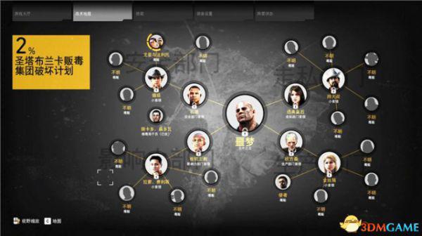 这一次《幽灵行动:荒野》的游戏主线展开方式与《合金装备5》相似,都是以自由选择任务的方式来进行流程,当然整个流程还是有一个大概框架的,我们要捣毁的贩毒团伙是以金字塔的形式构成的,而我们则是要从最底部开始一步步收集情报,再由下往上的逐步瓦解整个帮派。