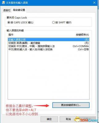 接下来的步骤是调整输入法切换快捷键的问题,win10系统原本貌似shilf+ALT也是切换输入法的热键,早知道这两个按键在h1z1游戏中经常会按到,一旦切到又出现卡顿问题