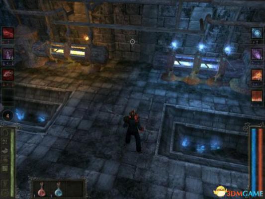 回到现在,跑去牢房区将满口胡言的法师拉到机器停放的房间,再去有画的房间和恶魔房间中间的那个屋子。搜刮每一个桌子和箱子,能找到9个3样,每样3个的材料,分别是:干青蛙,龙火石,和能量水晶吧好像。拿到房间里的坩埚那里。每样一个的放进去,能制成3个龙火炸弹。带着炸弹回到机器房间,分别炸开三面墙。将左右机器的密码再换回来,再将剩下那台机器的密码换成第二个。启动机器,咒语入脑,不用那笨蛋说了。回到恶魔房间,摆上绿色能量水晶,念动咒语纸条,恶魔重获自由。按照约定,它为你打开了门。