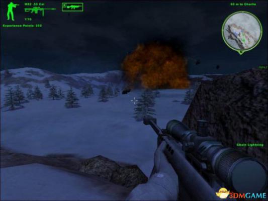 要领:黑夜,要开夜视镜,不要干掉楼顶的第三个敌人,要利用桥头的.50 cal炮。用遥控的就可以引爆!