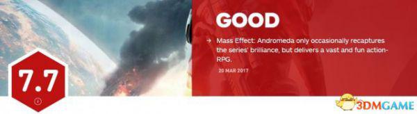经过数年的等待,玩家们终于迎来了《质量效应:仙女座》,这款在开放世界中冒险的太空歌剧,无疑带来了非常优秀的科幻气氛。然而游戏所存在的问题却极大影响了体验效果,成为了本作口碑上的致命伤。IGN给出了7.7分的评价。