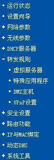 登陆进入后,点击转发规则,这里可以看到四项:虚拟服务器,特殊应用程序,DMZ主机,UPnP设置,连接的优先级和安全是依次从上到下。