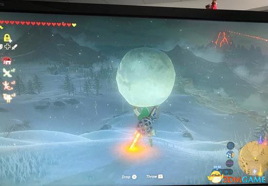 如果觉得看照片不好找,还有一个办法就是找到给你雪球的老头的位置,然后看着中间的球一直线走,走到悬崖遍扔球就可以了。