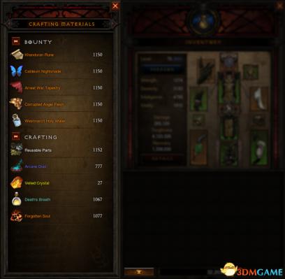 在物品栏中翻找制作材料已成为历史!包括奥术之尘、萦雾水晶、万用材料、死亡之息、悬赏制作材料以及地狱火制作材料在内的所有制作材料都将存储在一个单独方便的用户界面标签内。只需点击你的物品栏界面中金币总额旁边的小铁砧,就可以查看你的材料。