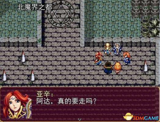 西行来到魔界之都边上的废墟洞窟,在洞窟内打败两个小BOSS,找到黄金钥匙后出洞,回到祝福之村,从村内(靠近后面)的一口井内进入地下通道,穿过通道来到忆之祭坛,在祭坛(魔法墙壁前)使用黄金钥匙,随之墙壁打开,此时进入忆之祭坛内部,进入后会遇到埋伏在这里的北魔界禁卫军,谁知道强大的禁卫军团将阿达等人打败之后迅速逃离现场。