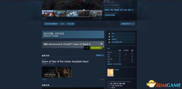 战锤40K:战争黎明3 steam售价:战锤40K:战争黎明3已经开启预购,国区售价268元,本作支持简体中文。战锤系列的粉丝们可以先行前往预购了。