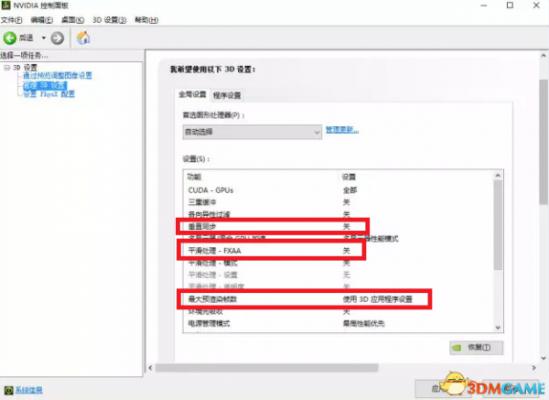 我的显卡是GTX1060 CPU是i7 6700 刚进入游戏后开车和视角转向都有些卡顿掉帧,后来我打开nvidia控制面板3d设置进行设置,垂直同步改为自适应 平滑处理-FXAA打开 最大预渲染帧数改为1 进入游戏后就算开了垂直同步和最高抗锯齿妥妥60帧!纵向丝滑一点也不卡,如果朋友们设置后还是卡顿那就是配置问题了。