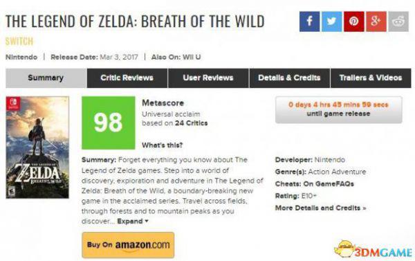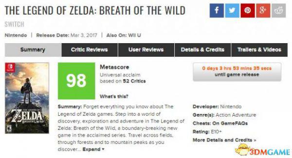 塞尔达传说荒野之息评分汇总 塞尔达传说评分一览