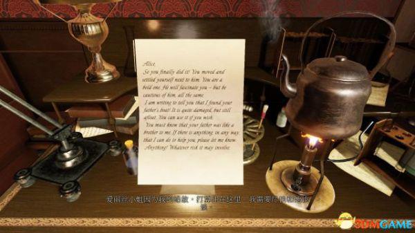 然后在工具架上拿取小刀将信封打开,信中的内容提到爱丽丝女士是有预谋搬到夏洛克隔壁住的。