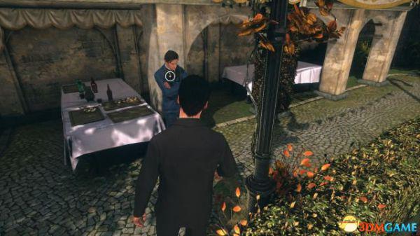 ①入门右侧餐桌坐下,偷听后方戴圆帽的男子——信息:提供特殊工作的家伙从不喝酒;