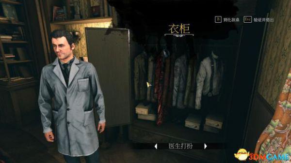 夏洛克决定与华生一同去探望艾尔伯特,但实现要乔装打扮。进入到夏洛克的卧室,在衣柜中选择医生打扮,接着就可以前往热带病医院。