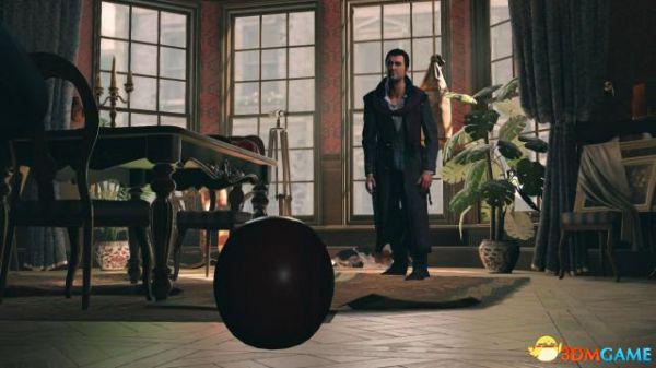 step32.这之后控制夏洛克,捡起斧头,然后去到右侧推动餐桌,靠近幕帘的控制器后用斧头砍断绳索,那么幕帘降下后就可以遮挡神秘人的视线。