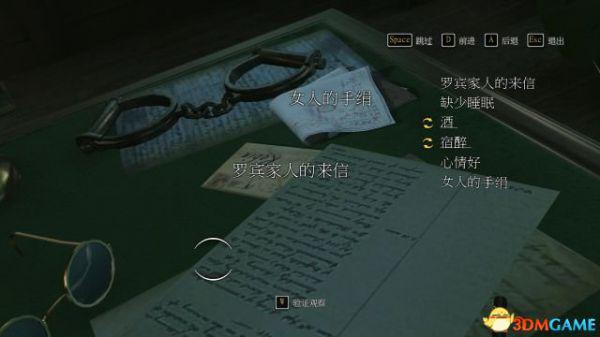 搜证上你要运用到三个“工具”,一是圆圈,但凡夏洛克靠近某些物件,而这些物件身上出现白色圆圈,就表示这些事物可以调查。调查过后,有时白色圆圈会变成绿色圆圈,则表示之前所调查的事物与案件有关;如果变为黄色,则表示这些事物与案件相关,但你在这里有缺漏的证据还未调查清楚;如果圆圈在调查过后依旧呈现白色,则表示这些事物与案件不相干;显示为感叹号,则表示这堆事物,在一下轮调查中需要用到。