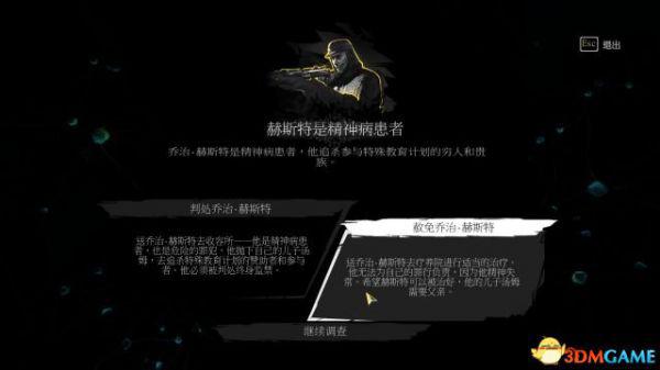 step1.接下来要进行向委托人、疑犯、目击者等了解案件来龙去脉的工作,大致步骤分为了“询问环节”、“建立人物画像”。
