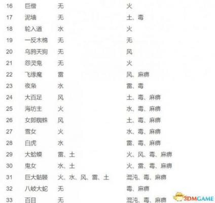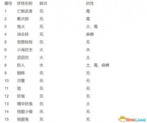 仁王33种妖怪的弱点及抗性说明