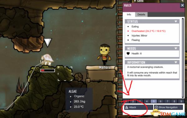 可以点击干生物弹出信息框(因为移动速度快,担心点不到的建议暂停),点击Attack(攻击),人物会行动