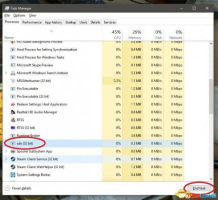 按了回车后alt+tab进入游戏,过程或许会有卡顿,如果不爽的话游戏过了跳出的那段地方后可以alt+tab打开任务管理器找出sde.exe进程结束掉,如下图,然后再继续游戏。