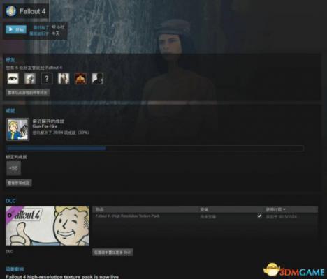 此外,要知道,这个“高清材质包”DLC并不会默认添加到你的DLC库当中去,以上为朋友的游戏统计界面,该朋友之前并没有购买任何DLC,所以不会显示DLC列表。