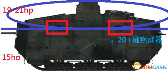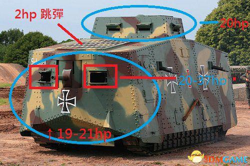 由图可知,如果你想击杀一辆满血的a7v,你需要6发主炮全部打在正面才行