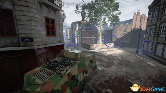 蓝色圈起来的地方是多数敌人架反坦克枪的地点