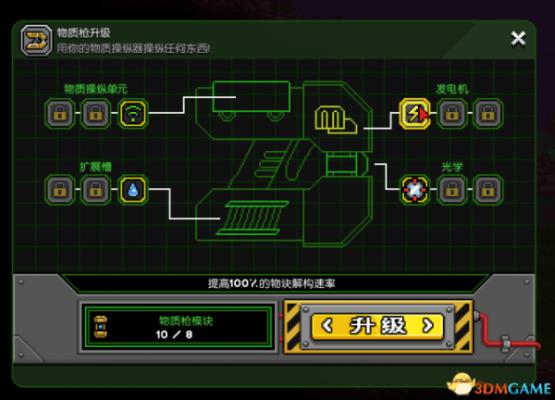 另外两个扩展槽前期没什么用,不升,然后接着发电机,第三级发电机特别贵,所以先升物质操纵单元