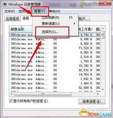 4.关键一步:直接输入“D:”回车 然后输入“cd sde”回车 然后输入“sde.exe -attach-pid XXXX”回车以上完后回到游戏,会非常卡,当猪脚走出死机的地方后,回到桌面,关掉sde.exe进程 XXXX就是任务管理器里面RE7的PID数据,win7不能直接显示PID,需要照下面的图手动设置才能显示。