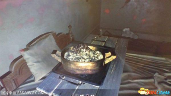 第三个,触发钟声后老太婆会再送来一份食物,使用叉子食用一下,下床拿上提灯后就可以在这锅食物中找到一只死老鼠。奖杯跳出。