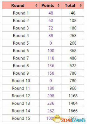无论胜利或者失败,都将获得积分奖励,下面是波次和奖励点数的关系表: