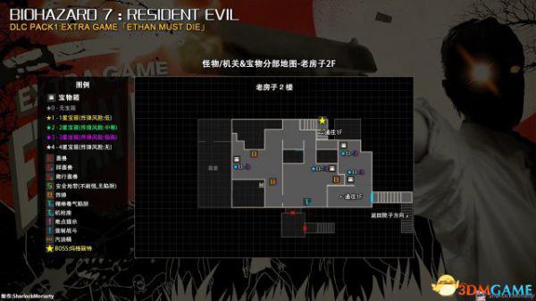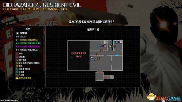 首先起点是从主屋的院子开始→经过主屋1层→地下处理区→主屋2层→主屋1层→院子→老房子→击败BOSS,途中会出现各种怪物,宝箱,以及坑爹的陷阱,由于这个模式下是不能打开地图的所以分布图都是从本篇截取来做的。