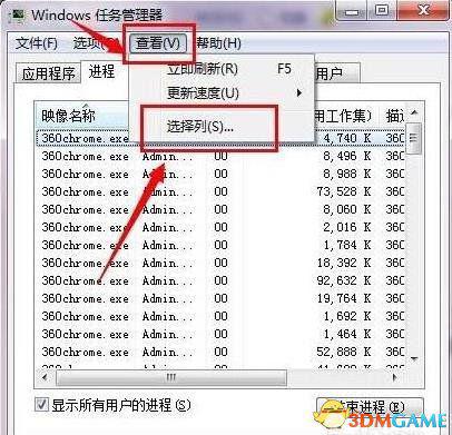 XXXX就是任务管理器里面RE7的PID数据,win7不能直接显示PID,需要照下面的图手动设置才能显示。