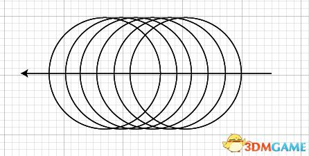 推论2: 当直线行进时,小旋风的轨迹. 一个线段。(如下图所示)