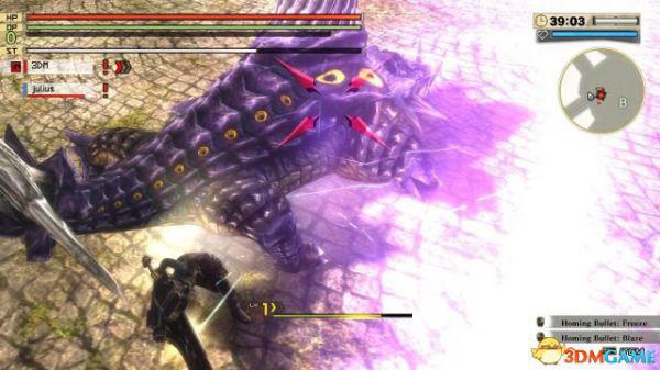 step3.随后BOSS vajra就会登场,它是一头巨大的狮子,招式比较简单,但提醒庞大增加其拍打、口部激光的攻击范围。