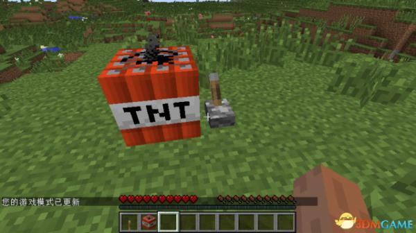 事实上生成的TNT在你击打后,会掉落一个TNT(正常),意味着你可以拿起来用,这个方法也可以用来坑人