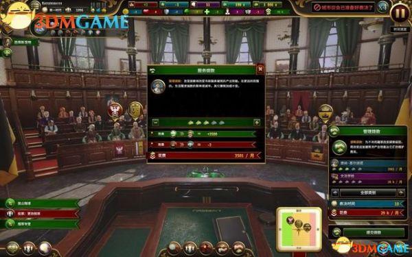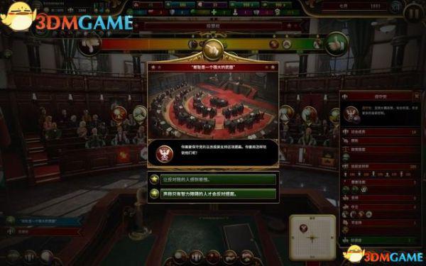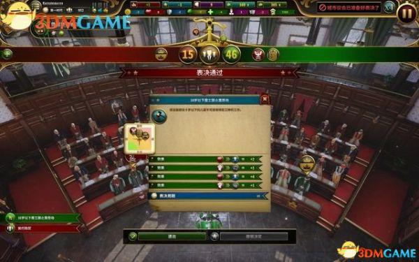 议会里有不同的政党,代表着不同阶层的声音。当你提出一个法案后,议会厅的政党们会展开讨论,并在周期内进行表决。