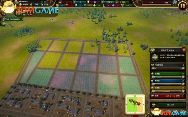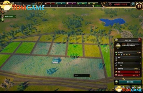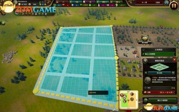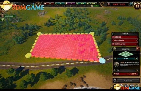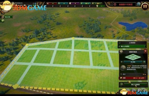点取“土地规划”图标,你可以拖曳图框来规划一块地方,作为行政区的土地。